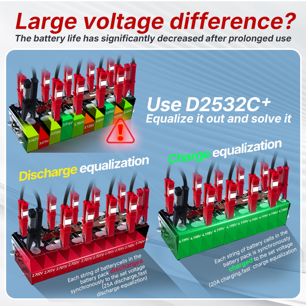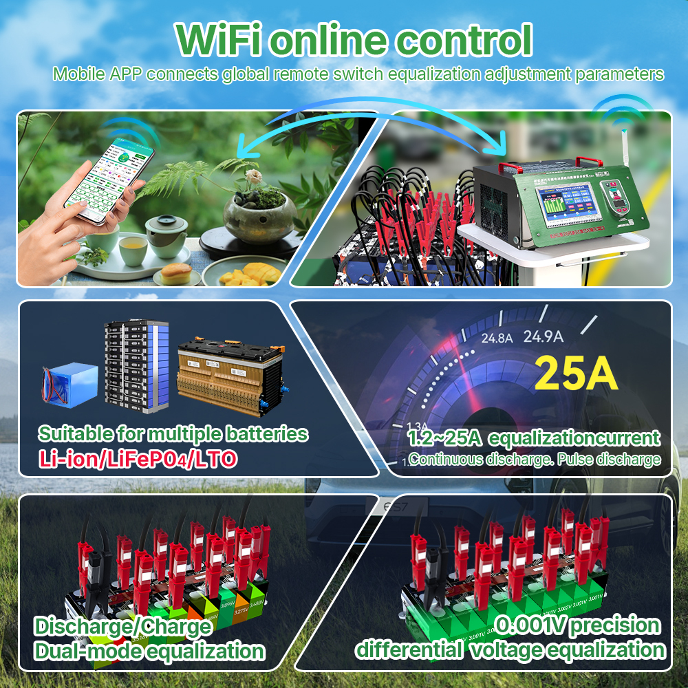 - Supports equalized repair and analysis of 2-32S battery modules, and is used for equalized repair of up to 32S lithium battery modules for new energy vehicles.
