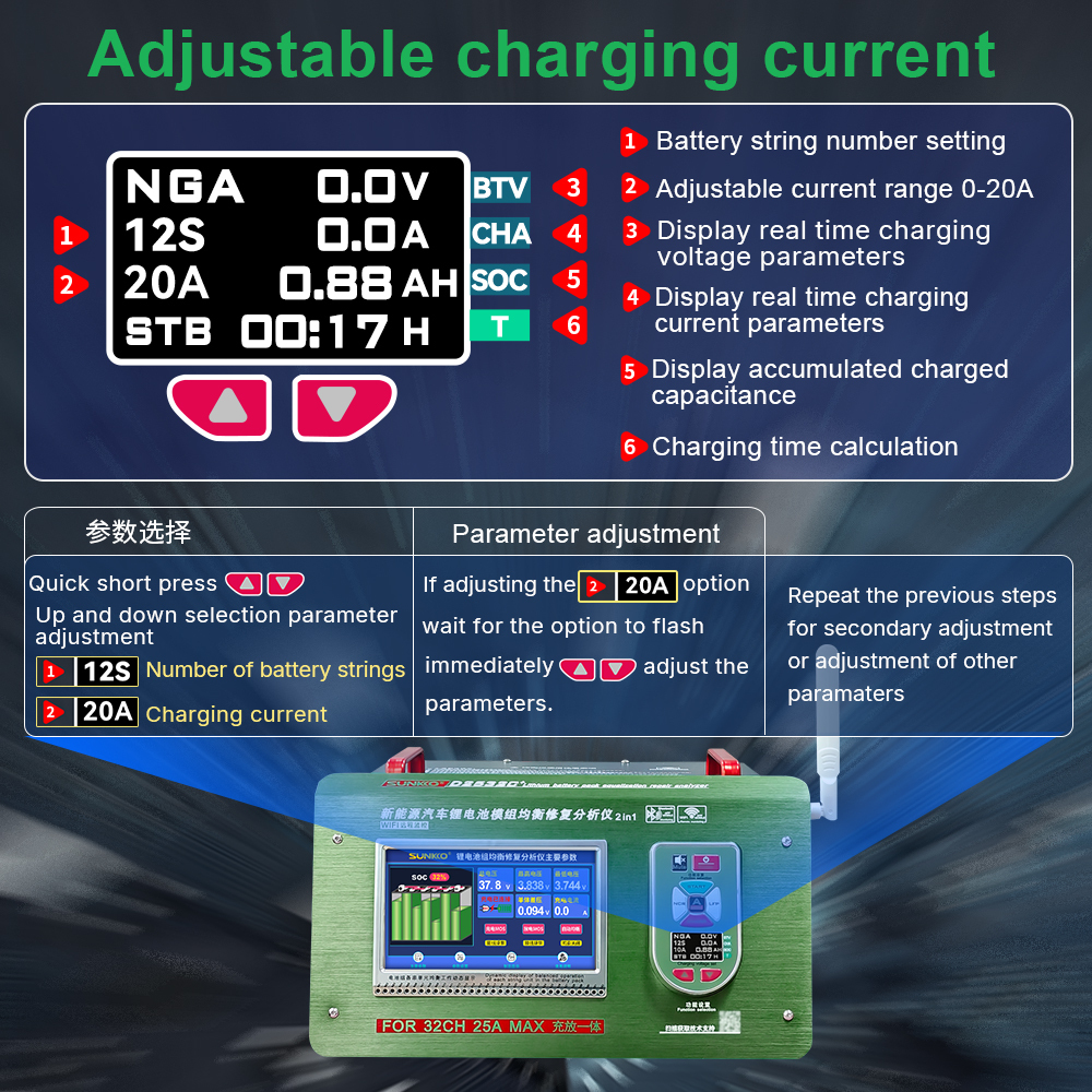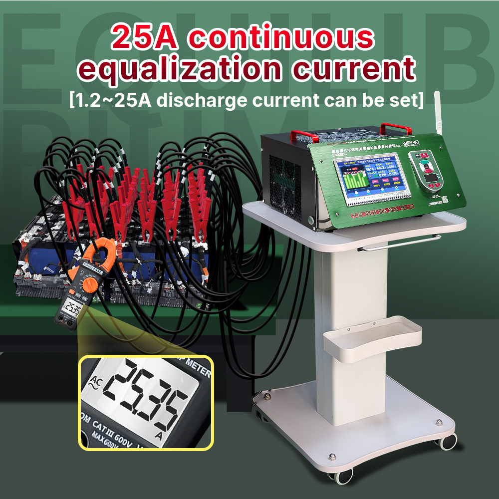 - The equalization current is adjustable, with a maximum value of 25A.And the machine can accurately equalize repair of different types of battery packs.